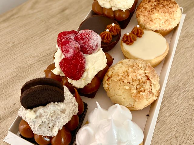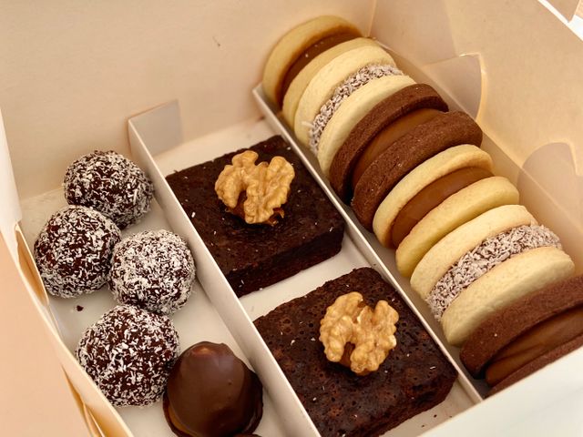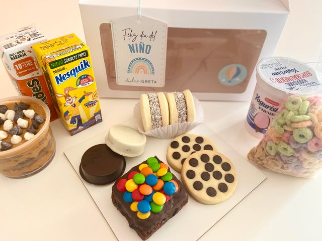 Incluye 8 mini tortas | 1 Torta Oreo, 1 Lemon Pie, 1 Brownie de Frutillas o Frutos Rojos, 1 Coco+ DdL, 1 Havannet chocolate negro con base de cacao, 1 Havannet chocolate blanco, 1 Brownie Oreo, 1 Apple Crumble|