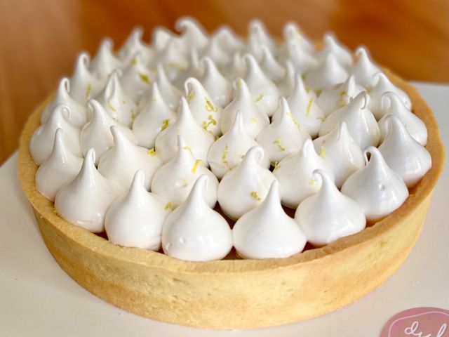 Base de chocolate, cremoso de Limón con leche condensada y merengue.